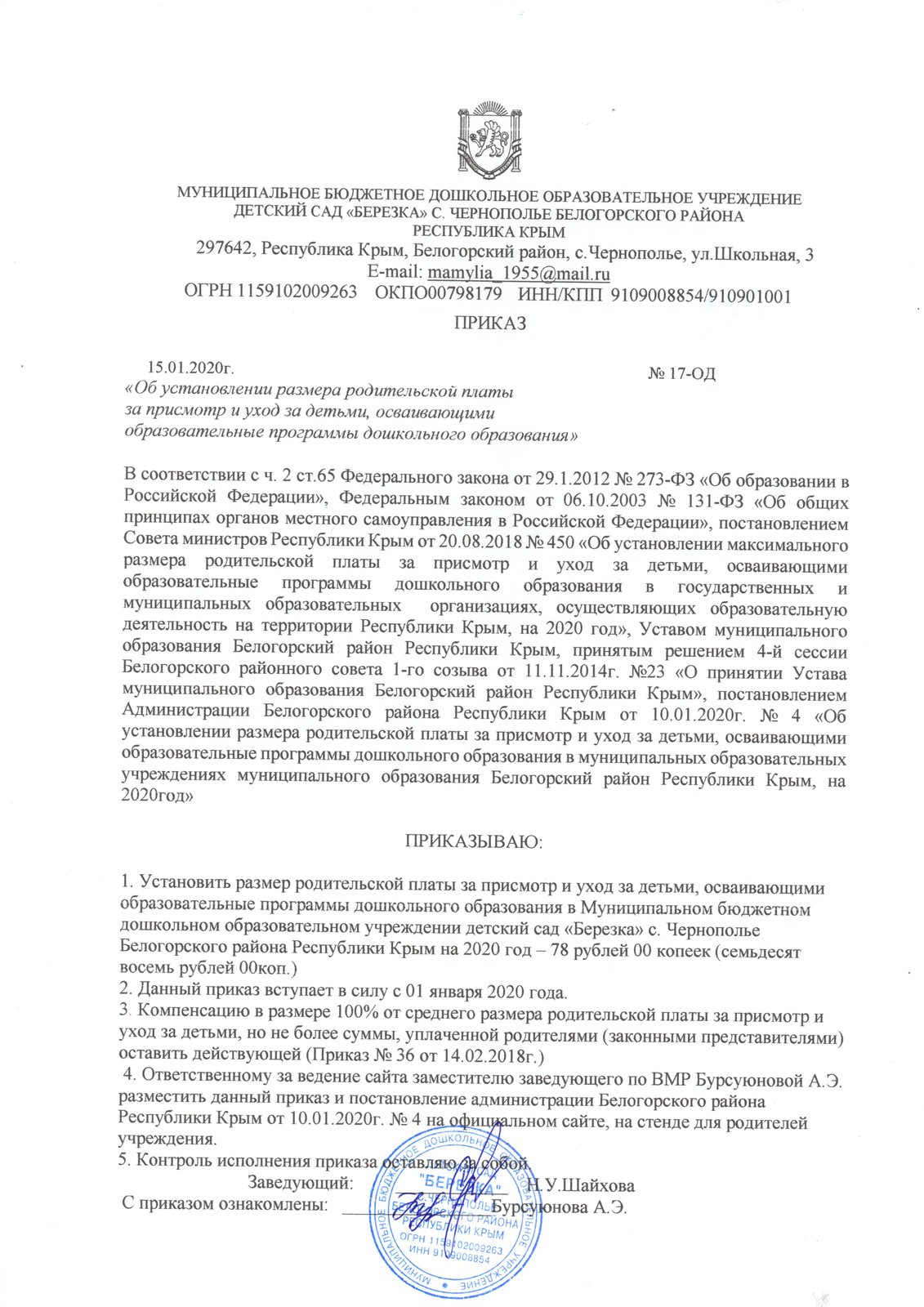 Муниципальное бюджетное дошкольное образовательное учреждение детский сад Березка с. Чернополье Белогорского района Республики Крым